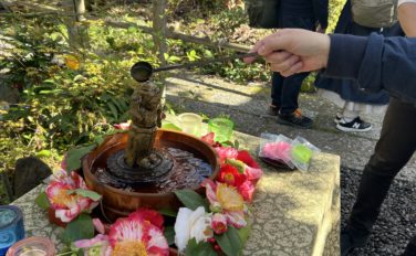 お釈迦さまに甘茶をかける。