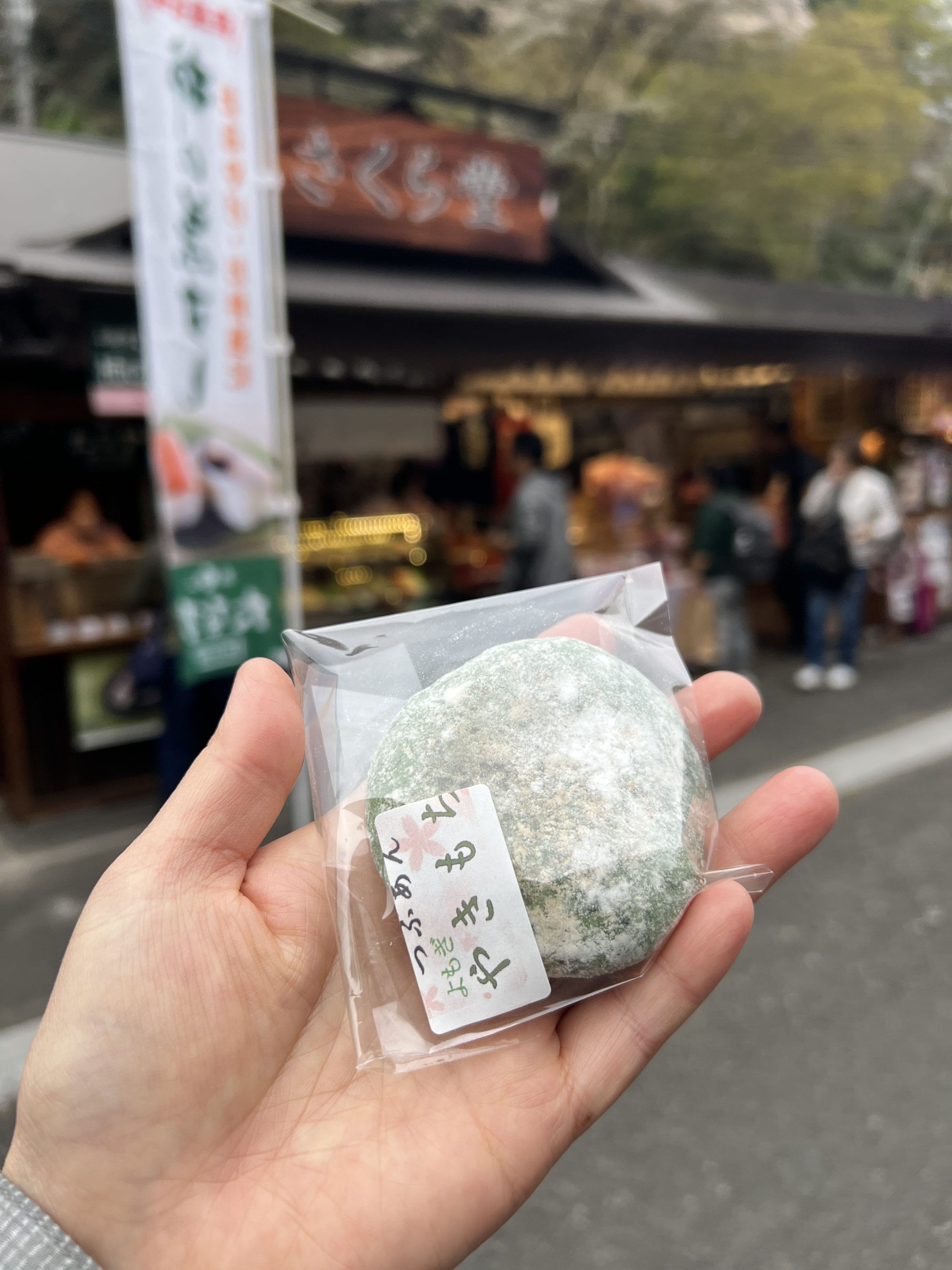 甘いものは控えようと言われたけど帰りでつい購入。奈良で適当に買ったよもぎ餅は、よもぎ度が高く美味しい。前に又兵衛桜出たところで買ったよもぎ餅が、超よもぎで美味で。