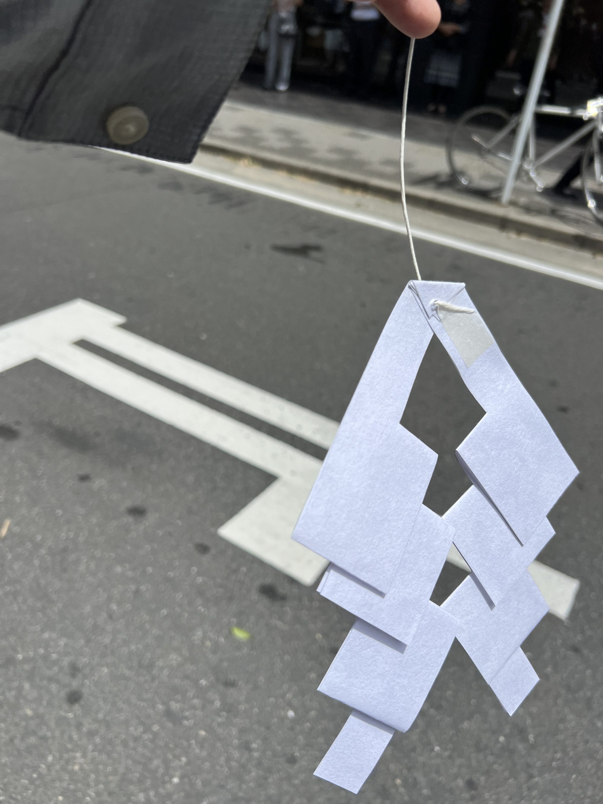 素材のひとつはでっかい棒なので、取り出す時は、通行止めになり、位置を変える時は、大通りを挟んで反対側のビルの入り口に引っかかりそうになりながら出す