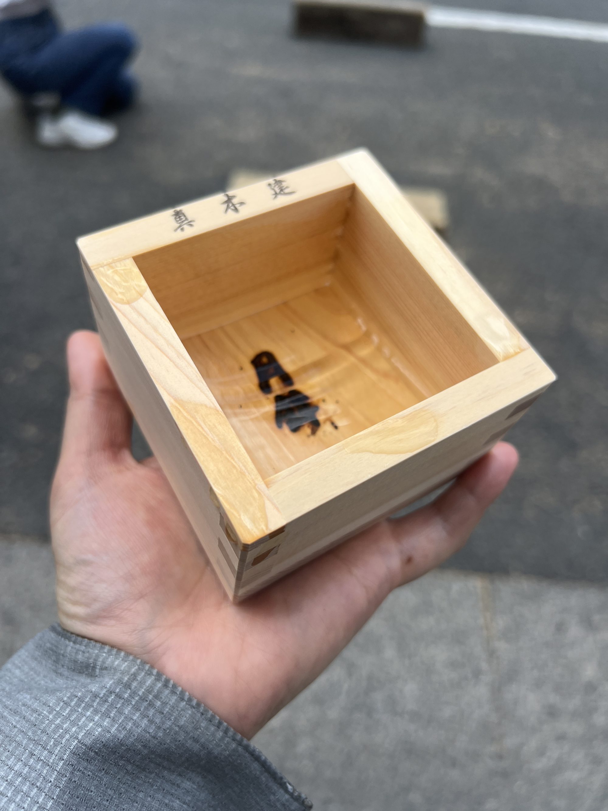月鉾の鉾立の時はお酒とお餅がふるまわれる…!太っ腹! このオリジナル桝はもらえる。今ペン立てになっている。