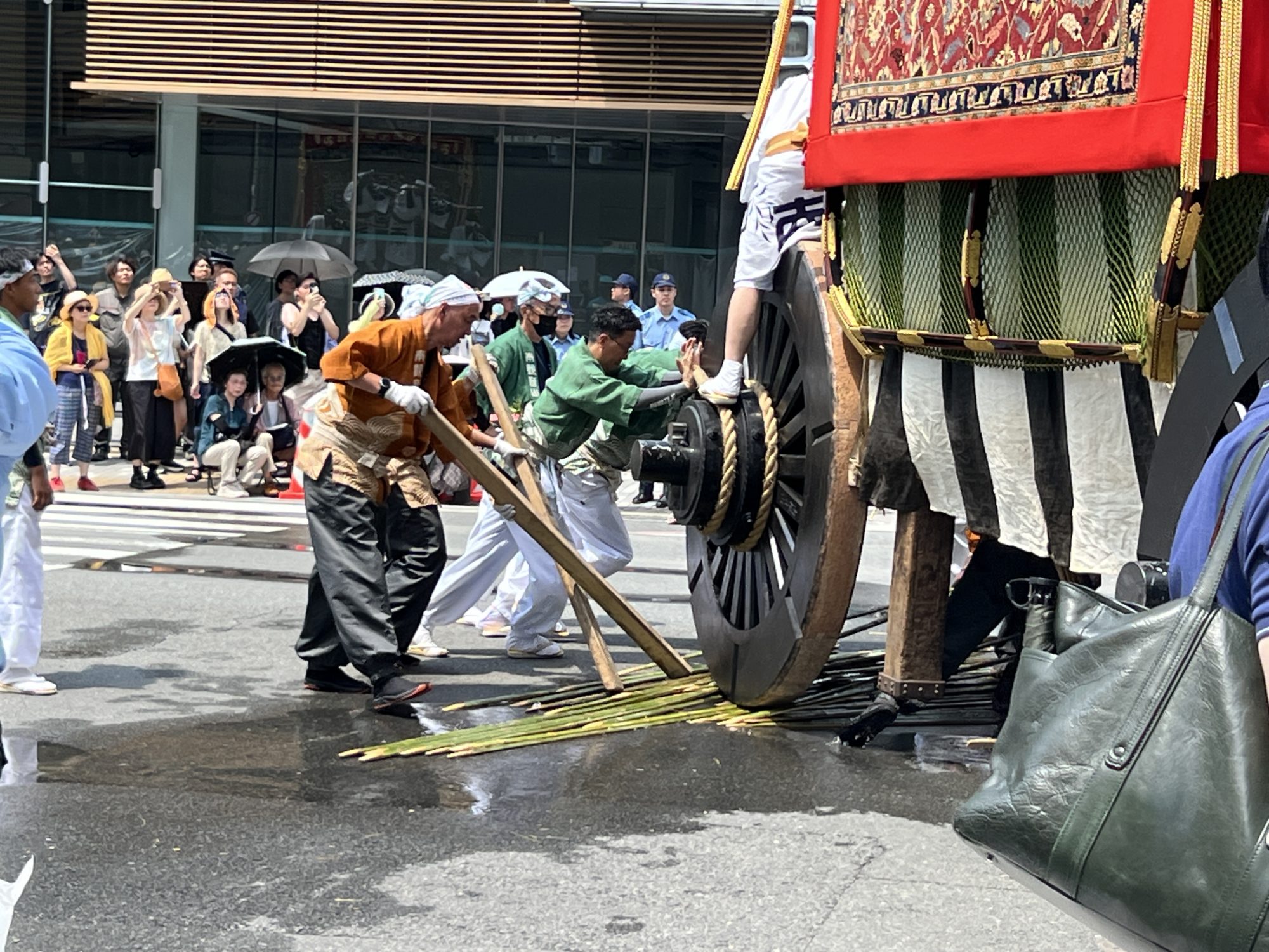四条通の最後のところは一番前で見れた。こうやって辻回しって行われてたのかとはじめて知る。