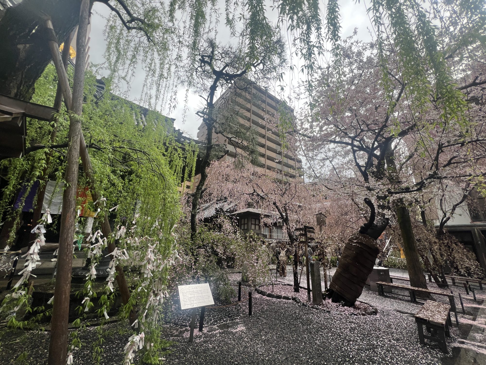 朝から雨で晴れ間のタイミングで大徳寺一久に行き。今宮神社で桜見学、開店前のあぶり餅をみつつ